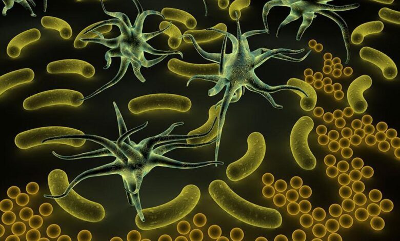 Volvoxمستعمرات Volvox globator تحتوي على آلاف الخلايا الفردية. عادة ما يكون لكل خلية سفينتين تدفعهما عبر مواد مثل الماء. Volvox يمكن تصنيفها على أنها طحلب أخضر في قسم Chlorophyta أو كبروتوز ذو سوط في الترتيب Volvocales.Robert W. Hoshaw / Encyclopædia Britannica، Inc. Volvox هو جنس من حوالي 20 نوعًا من الطحالب الخضراء في المياه العذبة الموجودة في جميع أنحاء العالم تقريبًا. بخلاف الميكروبات الأخرى الموجودة في هذه القائمة ، Volvox هي مستعمرات كروية حصرية وتشكل مستعمرات كروية مجوفة تتكون من 500 إلى 60000 خلية. بعض المستعمرات الكبيرة مرئية فقط للعين المجردة ، ولكن العديد منها مجهرية. ومن المثير للاهتمام أن الخلايا المختلفة في المستعمرة تخدم أغراضا مختلفة. وقد تم تجهيز بعضها بسلال ، والعمل جنبًا إلى جنب مع خلايا سوطية أخرى لنقل المستعمرة. توجد الخلايا التي تحتوي على بقع صغيرة بشكل عام للمساعدة في توجيه المستعمرة نحو الضوء لعملية التمثيل الضوئي. هذا التنسيق والتنظيم غير معتاد على الإطلاق بالنسبة للطحالب الاستعمارية ، ويعتقد العلماء أن هذا التركيب يمكن أن يكون مهمًا في فهم كيفية تطور الحيوانات من الكائنات الدقيقة.