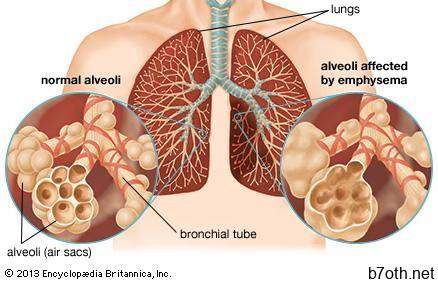 يتميز مرض الانسداد الرئوي المزمن بشكل مرضي بتدمير أنسجة الرئة ، والتي يتم استبدالها بفتحات مميزة من انتفاخ الرئة ، ومن خلال الميل للإفراط في إنتاج المخاط في المجرى الهوائي ، والذي يؤدي إلى ظهور أعراض التهاب الشعب الهوائية. تتحقق هذه الخصائص المرضية من الناحية الفيزيولوجية على أنها صعوبة في الزفير (تسمى تقييد التدفق) ، والذي يسبب زيادة حجم الرئة ويتجلى كحالة في التنفس. تشمل الأعراض المبكرة الأخرى لهذه الحالة “سعال المدخن” وإنتاج البلغم اليومي. السعال في الدم ليس سمة من سمات مرض الانسداد الرئوي المزمن ، وعندما يثير هذا القلق القلق بشأن الحالة الثانية المرتبطة بالتبغ ، وخاصة سرطان الرئة. المرضى الذين يعانون من مرض الانسداد الرئوي المزمن هم عرضة للتدهور العرضي لحالتهم (يسمى تفاقم). يتم تشغيل التفاقم عن طريق العدوى ، إما بكتيرية أو فيروسية. لذلك ، لا تكون المضادات الحيوية ، التي تعمل ضد البكتيريا ، مطلوبة دائمًا. تشير التواترات المتكررة ، خاصة إذا كانت شديدة بما يكفي لتبرير دخول المستشفى ، إلى سوء التشخيص.