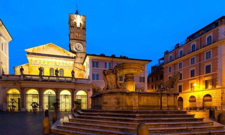 سانتا ماريا في تراستيفير هي شعار ساحة المواطن . هنا يمكنك القدوم إلى الدردشة وشرب المشروبات مع أصدقائك وقضاء أمسية صيفية . يضم المنزل ساحة Basilica of Our Lady الجميلة في Trastevere مع الفسيفساء واللوحات الجدارية التي تعود إلى العصور الوسطى ، بينما يوجد في وسط الساحة أحد أقدم النوافير في روما .