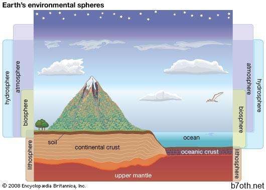 قبل مجيء الحياة كانت الأرض مكانًا كئيبًا ، وعالمًا صخريًا بحارًا ضحلًا ، ونطاقًا ضئيلًا من الغازات – إلى حد كبير ثاني أكسيد الكربون وأول أكسيد الكربون والنيتروجين الجزيئي وكبريتيد الهيدروجين وبخار الماء. لقد كان كوكبًا عدائيًا ودنيًا. هذه الحالة غير العضوية الصارمة للأرض تسمى الأرضي. وتتكون من الغلاف الصخري (الصخور والتربة) ، والغلاف المائي (الماء) ، والغلاف الجوي (الهواء). الطاقة من الشمس قصفت بلا هوادة سطح الأرض البدائي ، وفي الوقت – ملايين السنين – أنتجت الأعمال الكيميائية والفيزيائية أول دليل على الحياة: النقط الخالية من الأشكال ، التي تشبه الهلام والتي يمكن أن تجمع الطاقة من البيئة وتنتج المزيد من أنواعها الخاصة . هذا الجيل من الحياة في الطبقة الخارجية الرقيقة من الغلاف الجغرافي أنشأ ما يسمى بالمحيط الحيوي ، “منطقة الحياة” ، وهي عبارة عن جلد محول للطاقة يستخدم مادة الأرض لصنع مادة حية.