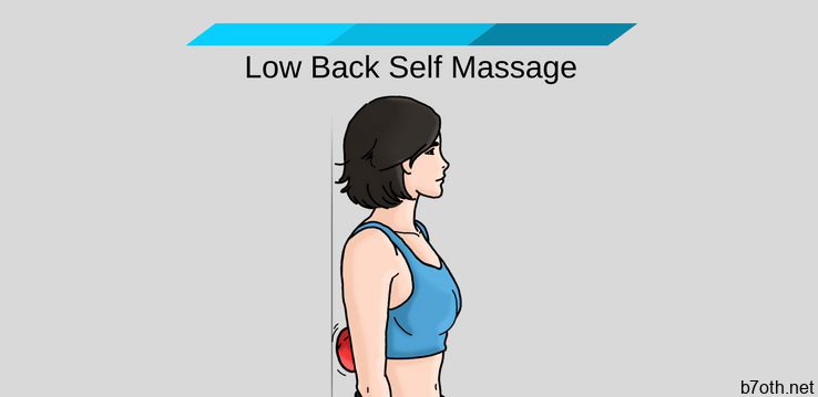 يكون التدليك الذاتي في جميع أنحاء منطقة العمود الفقري باستخدام كرة التدليك ، عن طريق وضع كرة تدليك مثل كرة التنس أسفل الظهر بين الظهر وجدار مثل الحائط ، ثم حرك جسمك لأعلى ولأسفل أو جنبًا إلى جنب للعثور على مناطق التوتر والإصابة وذلك مع ممارسة ضغطًا أقوى في بعض المناطق المصابة للمساعدة في إطلاق التوتر .