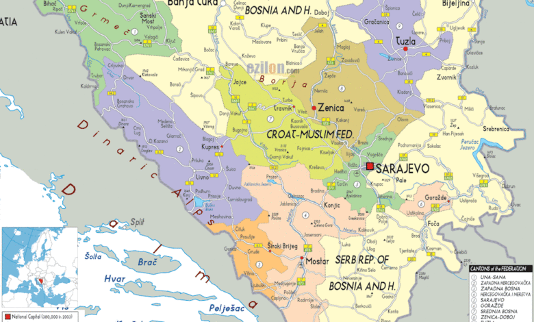 البوسنة والهرسك هي البلد الواقع في شبه جزيرة البلقان الغربية في أوروبا، وتحتل المنطقة الأكبر في البوسنة الأجزاء الشمالية والوسطى من البلاد، وتحتل البوسنة والهرسك الجنوب والجنوب الغربي، ولا تتوافق هاتان المنطقتان التاريخيتان مع الكيانين السياسيين المتمتعين بالحكم الذاتي اللذين أنشأتهما اتفاقات دايتون التي تم التوصل إليها بوساطة دولية في عام 1995 جمهورية صربسكا (جمهورية صرب البوسنة)، الواقعة في الشمال والشرق، واتحاد البوسنة والهرسك اللذين يحتلان المناطق الغربية والوسطى، وعاصمة البلاد هي سراييفو، وتشمل المدن الإقليمية الهامة موستار وبانيا لوكا .