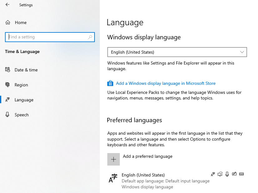 – سينتقل بك مباشرة الى صفحة اللغة و التي من خلالها ستقوم بالضغط مرتين على اللغة الافتراضية لويندوز 10 ثم الضغط على زر ” خيارات ” ثم الانتقال الى زر الاضافة الى لوحة المفاتيح و اضافة اللغة التي تريدها و بعد الانتهاء تقوم بمسح اللغة الافتراضية .
