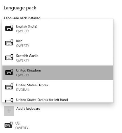 – لتظهر لك نافذة جديدة بها قسم باسم الكيبورد و به زر للاضافة قم بالضغط عليه ستظهر لك قائمة من خيارات اللغة المدعومة من ويندوز 10 لنقوم باختيار اللغة التي نريدها .